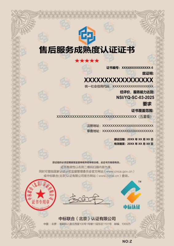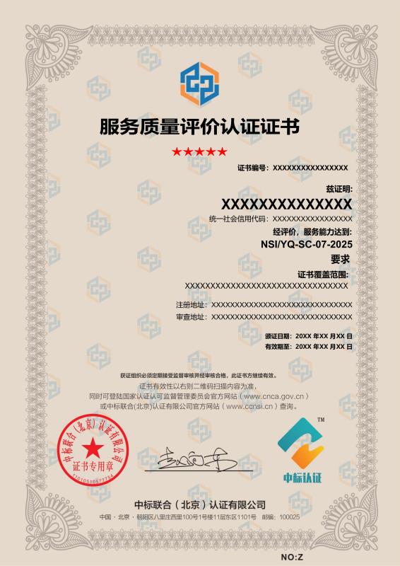 服務證書樣本展示